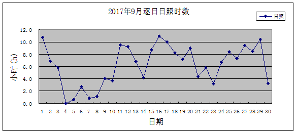 月日照時(shí)數(shù)187.3小時(shí),與累年平均值比偏多1成。其中,上旬日照與累年比偏少近4成,中旬、下旬日照與累年比分別偏多4成多、近4成。